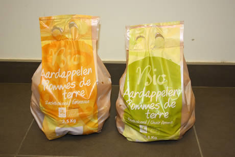 De Aardappelhoeve levert drie soorten biologische aardappelen namelijk Bio Kriel, Bio Zachtkokend en Bio Vastkokend. "Vanaf eind september verpakken we de Bio Zachtkokend en Vastkokend met de nieuwe Bio Jbreeze verpakkingsfolie. Hiervoor leverden we de aardappelen in plastic zakken, maar de vraag naar bioverpakking werd steeds sterker. Ook de inkt, die nu op de verpakking wordt gedrukt, is biologisch." Bart geeft aan dat de kosten van de Bio Jbreeze vergeleken met een 'gewone' plastic verpakking niet veel uitmaakt. "Het verschil is zo'n 7,5 cent, omgerekend per kilo aardappelen. Daarnaast vinden mensen, die geld uit geven aan biologische producten, het vaak ook niet erg om daarbij iets meer voor de verpakking te betalen. Zij willen namelijk ook dat de afvalberg kleiner wordt en door deze verpakking werken ze daaraan mee."