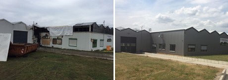 Links: Bio-Maintalkresse na de brand, rechts de huidige situatie.