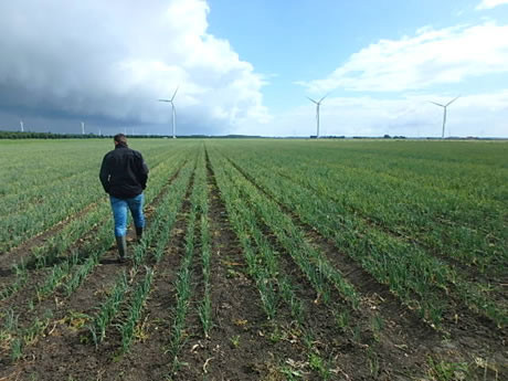 Rudie geeft aan dat inmiddels ook de eerste zaaiuien gerooid zijn. "Als het de komende weken groeizaam weer blijft, zullen de uien hopelijk beter de maat in groeien. De maatsortering 40-60 zal ruimschoots aanwezig zijn, maar als bijvoorbeeld Duitsland, zoals afgelopen jaar, niet aan de markt komt, kan er wel een groter prijsverschil tussen de maatsorteringen ontstaan dan andere jaren", verwacht Rudi. "Biologische rode uien zullen een niche-product blijven. Vorig jaar was het prijsniveau van de rode uien erg goed en dat resulteert dit jaar weer in een areaaluitbreiding, maar de kwaliteit blijft een issue, zeker zolang er geen meeldauwresistente rassen beschikbaar zijn."