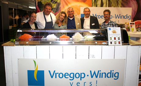 Het team van Vroegop-Windig met als tweede van links culinair adviseur Jaap Sloof en als vierde van links Bertus Korver