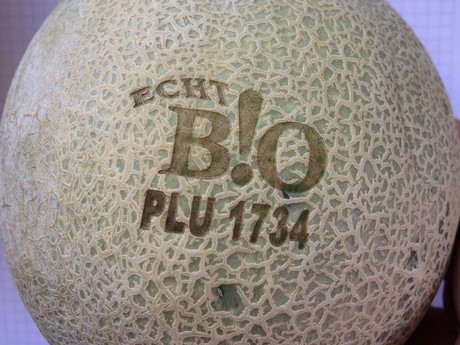 Het logo in de meloen is er met een laser ingebrand.