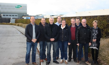 De mensen achter de themadag 'Trendy groenten", met in het midden achteraan Jan Hanssens van Ardo. De man rechts is Rik Decadt van de REO Veiling. Links op de achtergrond staat de volledige geautomatiseerde koelcel van Ardo, met een oppervlakte van 1 hectare.