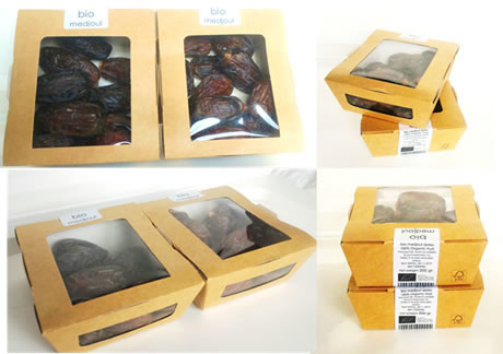 "Het schaaltje heeft twee kijkramen en kan 200 tot 250 gram dadels bevatten en heeft een natuurlijke strakke look. Dit product is zeer geschikt voor natuurwinkels en de retail. Ook wat prijs betreft, geen redenen meer om ouderwetse plastic verpakking te gebruiken", aldus Gil Berholz. "Wij importeren rechtstreeks biologische Medjoul dadels uit de Jordaanvallei en verpakken ze in Nederland en Israël. Zo kunnen we flexibiliteit aanbieden en relatief kleine minimum bestelling hoeveelheid hanteren met snelle levertijden in heel Europa."