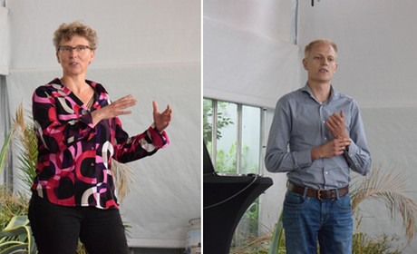Miriam van Bree van Bionext en Daan van Empel van GroentenFruit Huis geven een toelichting over (bio)keurmerken