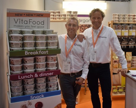 Na een succesvolle introductie tijdens de Nordic Organic Food Fair introduceert IDorganics VitaFood tijdens de Biobeurs in Zwolle. VitaFood is een volledig assortiment smakelijke en voedzame biologische producten voor ontbijt, lunch/diner en snacks in handige, composteerbare portiebekers. Het assortiment omvat naast producten die koud kunnen worden gegeten, zoals muesli, granola en snacks, ook diverse warme producten voor lunch of diner. Aan deze producten hoeft alleen kokend water te worden toegevoegd. Ze zijn in 5 minuten klaar voor consumptie.