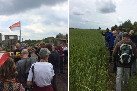 Links een foto van het bezoek aan de fruittuinen, rechts bij GAOS.