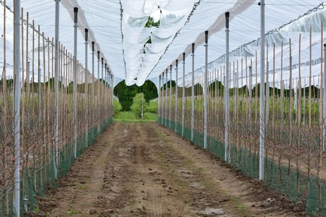 Op ruim halve hectare staan onder een overkapping diverse hardfruitrassen