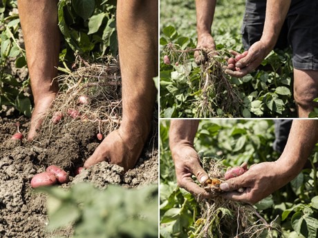 "Wij telen in de polder in Dronten op zeeklei. Dat is eigenlijk in verhouding hele jonge grond. Deze heeft geen historie in belasting en teelt, daaruit komen kwalitatief hele mooie aardappelen. Wij werken aan een natuurlijke balans. Zorgen ervoor dat we onze planten niet overbemesten. Deze aardappelen krijgen de tijd om te groeien, het liefst zonder in te grijpen. In het verleden heb ik mijn licenties gehaald voor het hanteren van synthetisch-chemische gewasbeschermingsmiddelen. Toen ik hoorde dat één kopje voldoende effect heeft voor een tank van in 3000 liter, besefte ik me hoe gevaarlijk het gebruik van dergelijke middelen moest zijn. Voor jezelf en voor de omgeving. Daarom ben ik nu overtuigd biologisch-dynamisch teler."