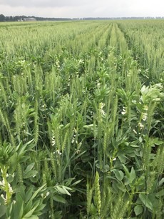 Foto rechts: een mengteelt van tarwe met veldboon.