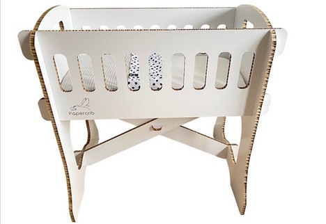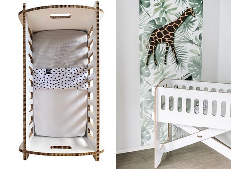 De kartonnen wieg is te bestellen voor € 120,-. Voor meer informatie: www.papercrib.nl.