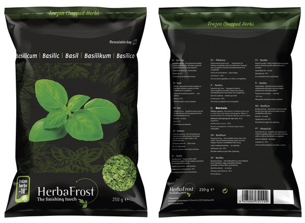 Kruiden winnen zienderogen terrein in de Europese AGF-handel en daarbuiten. Het gezonde groen brengt afwisseling in het menu en laat de horeca en consument met nieuwe smaken kennismaken. Als duurzame en IFS-gecertificeerde kruidenproducent is er HerbaFrost veel aan gelegen passende verpakkingen voor het IQF-diepvrieskruiden-assortiment te ontwikkelen. Voor industrieklanten zijn er opties vanaf 10 kg, voor de foodservice zijn er de bekende zakken van 250 g en 1 kg.