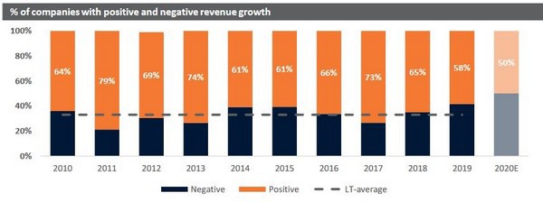 Voor middelgrote voedselondernemingen in Nederland was 2019 geen goed jaar. "Een fusie- en overnamegolfje is onvermijdelijk", aldus het Nederlandse overname-adviesbureau Vondel Finance dat zijn jaarlijks onderzoek presenteert naar de 125 middelgrote Nederlandse voedingsondernemingen. In 2019 werd voor de derde keer op rij namelijk afgesloten met een daling in de winstmarge. Deze marges waren in 2019 zelfs het laagste in de laatste 10 jaar terwijl er geen indicatoren zijn dat 2020 zoveel beter gaat zijn. De gemiddelde omzet groeide wel. 30% van de bedrijven in het onderzoek zal dit jaar ook afsluiten met verlies. Vooral bedrijven die leveren aan de foodservice zijn dit jaar immers hard getroffen.