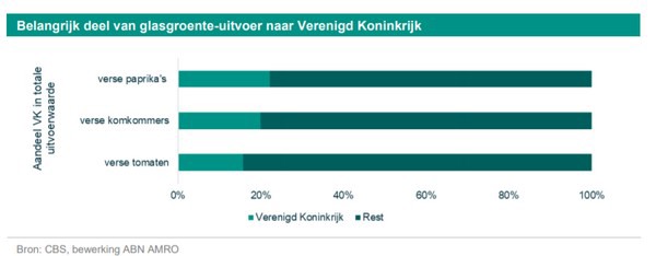 ABN AMRO verwacht dat de vraag naar glasgroente zal stijgen als de horeca in binnen- en buitenland weer een hogere bezetting hebben in vergelijking tot dit jaar. De Brexit kan echter nog roet in het eten gooien. De glasgroenteteelt is namelijk voor een belangrijk deel afhankelijk van het Verenigd Koninkrijk. Circa een vijfde van de uitvoer gaat naar de Britten.