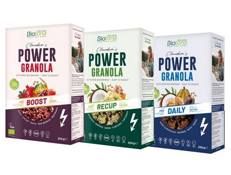 Biotona lanceert drie unieke samenstellingen gemaakt op basis van geactiveerde boekweit, en dus niet havermout zoals bij de meeste standaard granola’s. De activatie van dit glutenvrij superzaad maakt het voedzamer door dat voedingstoffen optimaal beschikbaar worden gesteld. De granola’s zijn licht verteerbaar en zijn een goede bron van volwaardige eiwitten. “Heerlijk als ontbijt, als gezonde snack en ideaal om je dat tikkeltje extra power te geven.”