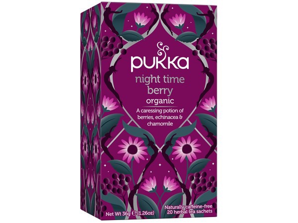 Sinds half december is de nieuwste thee van Pukka verkrijgbaar: Night Time Berry. Zoals uit de naam al opgemaakt kan worden, gaat het om een nieuwe melange in de 'night time' theerange van het Britse theemerk. Het gaat om een blend met kamillebloem, verzachtende lavendel en valeriaanwortel. De thee is van nature cafeïnevrij en gemaakt van ethisch verantwoorde, 100% biologisch geteelde ingrediënten. Een doosje bevat 20 individueel verpakte theezakjes die volledig biologisch afbreekbaar zijn.