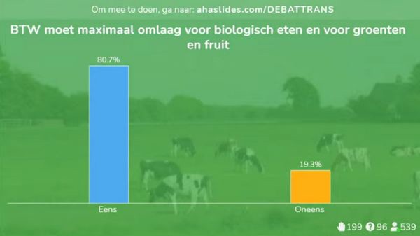 Nu de Tweede Kamerverkiezingen er aan komen (17 maart) wilden de Transitie Coalitie Voedsel, Bionext, Natuur & Milieu, Greenpeace en de Tapp Coalitie weten wat zes Kamerleden en kandidaat-Kamerleden (van partijen waarvan de organisatoren inschatten dat zij een kansrijke coalitie kunnen gaan vormen) van plan zijn. Dit werd tijdens het debat over 'De maatschappelijke business case van een transitie naar duurzame landbouw' wat duidelijker aan de hand van verschillende thema's. Hierin kwam onder meer een maximale Btw-verlaging voor bio-producten aan bod. Uit het debat blijkt dat de noodzaak van de transitie zeker duidelijk is. Het is helder waar we naartoe moeten, maar er is vooral nog veel discussie over de instrumenten en het tempo.