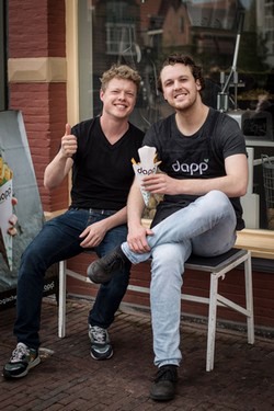 Tholen - Per 1 maart neemt Thijs Boom de Dapp Frietwinkel in Leiden over. Hiermee gaat Thijs officieel als zelfstandig ondernemer aan de slag in de vorm van een franchise, zo maakte Dapp eerder vanmiddag bekend op LinkedIn. Ruim twee jaar werkten Siem van Bruggen en Thijs samen met het team aan de groei van Dapp Frietwinkel in Leiden. Siem (links op de foto, #fotoisnogprecorona) geeft aan heel blij te zijn met deze stap. "We hadden van begin af aan de ambitie om ook van deze vestiging een franchise te maken. Dit is het resultaat van een mooie intensieve samenwerking."