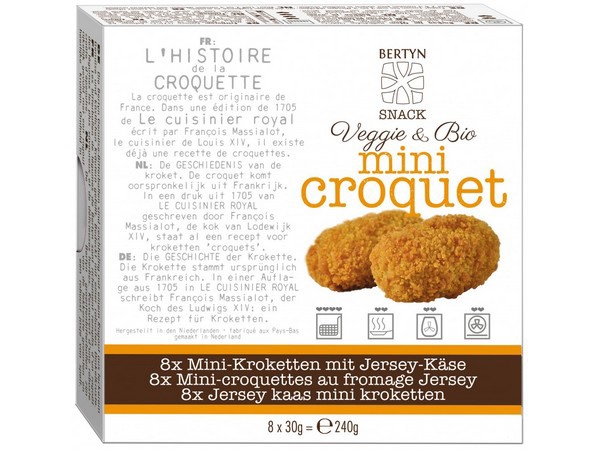 Tholen - Nieuw in het aanbod van Bertyn is het gamma 'Bertyn Snack', met luxe bitterballen en kroketten, gemaakt van pure biologische ingrediënten. "Comfortvoeding op z'n best", vertelt Tim Spek, Sales manager Nederland voor Bertyn. Er zijn drie varianten Veggie & Bio bitterballen: Oesterzwam, Groenten en Groente-Kaas. Ook heeft Bertyn één mini croquet ontwikkeld - gevuld met Jerseykaas. En er zijn verschillende kroketten: Oesterzwamkroketten, Groentekroketten, Groente-Kaas-kroketten en Jerseykaas-kroketten.