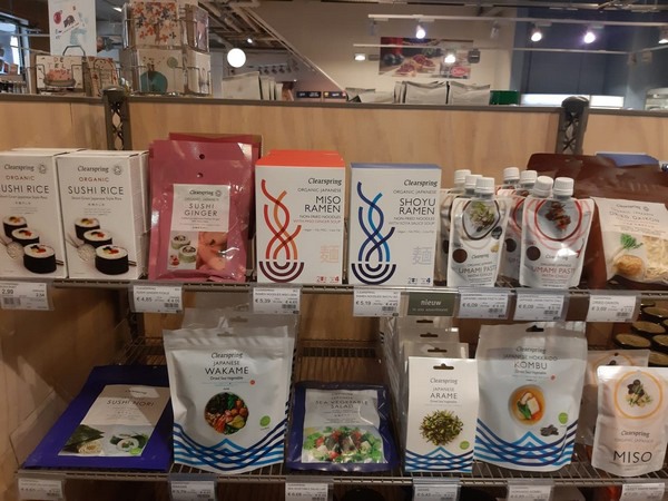 Een deel van het Clearspring-aanbod bij Odin Czaar Peter (aan de Czaar Peterstraat in Amsterdam).