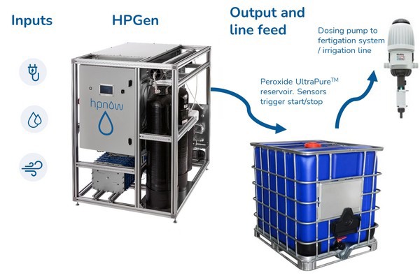 Huelva is een belangrijke landbouwregio in Spanje. Droge grond en een warm klimaat, gecombineerd met gebruik van organische meststoffen, kunnen echter een uitdaging vormen voor telers. Een teeltbedrijf voor blauwe bessen van 24 hectare in Huelva, dat deel uitmaakt van een organisatie die biologisch zachtfruit van hoge kwaliteit produceert, vroeg HPNow om hulp. Het resulteerde in de installatie van HPGen techniek, waarmee de teler nu zelf waterstofperoxide produceert.