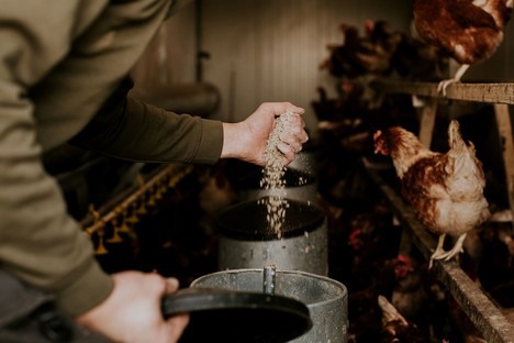 In de karren is voor 7 dagen biologisch voer en water. Hoewel de wetgeving krachtvoer goedkeurt wat voor 95% bestaat uit biologische grondstoffen kiest GeluksVogel ervoor om het beste eitje van de klas te willen zijn door voor zowel de hennen als de hanen voor 100% bio te kiezen. Ook de ouders van de dieren zijn van biologische afkomst.