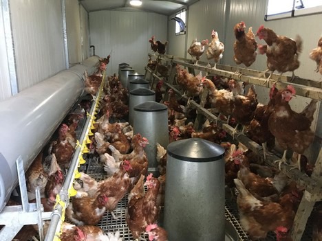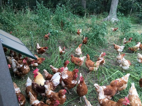 De karren worden elke week verplaatst waardoor er telkens vers gras met insecten te eten is voor de kippen en de hanen. Het verplaatsen voorkomt een zwarte inloop bij hun mobiele verblijf waardoor ze geen vreemde stoffen binnenkrijgen. Ook worden ze niet preventief ontwormd. De dieren zorgen voor een natuurlijke bemesting en een volledig begroeide wei, wat weer verse voeding oplevert.