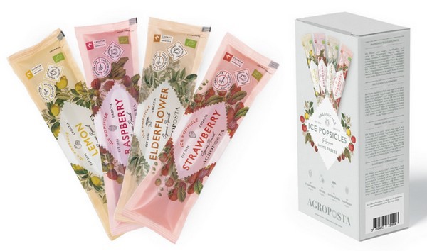 Agropošta lanceert deze week biologische popsicles. Vrieslollies die je zelf thuis kunt invriezen. Een doosje bevat acht ice popsicles in de smaken aardbei, framboos, citroen en vlierbloesem. Het materiaal van de verpakking is volledig recyclebaar.