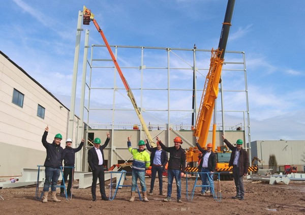 Op vrijdag 9 april is het hoogste punt van de nieuwbouw bij Oerlemans Plastics bereikt. Het bouwteam van het grote project op industrieterrein De Rietdijk was ooggetuige van deze bouwtechnische mijlpaal.