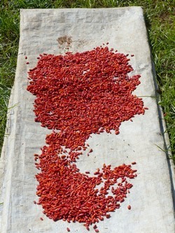 De Afrikaanse Bird's Eyes Chillies, de capsicum annuum L, zijn familie van de tabasco peper. De Chillies worden twee keer per jaar geoogst aan het begin van het droge seizoen. De rijpe en rode vruchten worden hand geplukt door de boeren en daarna aan de zon gedroogd op kleden.