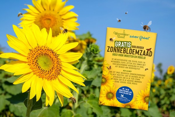 Koop vanaf 3 mei een zuivel product van Zuiver Zuivel of Weerribben Zuivel bij de bio-speciaalzaak en ontvang een gratis zakje biologisch zonnebloemenzaad. Het streven is om met deze actie door heel Nederland, dit voorjaar 2 miljoen biologische zonnebloemen te zaaien en daarmee de biodiversiteit waaronder de insecten en vogels te helpen.