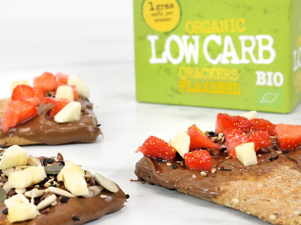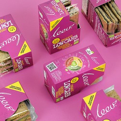 Leev Low Carb qrackers zijn gemaakt van lijnzaad, tarwegluten, pitten en zaden. Lijnzaad is een low carb held. Het bevat weinig koolhydraten, veel vezels en is rijk aan proteïne. Ideaal voor een stabiele bloedsuikerspiegel. De volkoren crackers zijn 100% biologisch, bevatten geen palmolie of suiker en weinig zout. Eén cracker bevat maar één koolhydraat. Dat is niet alleen makkelijk tellen, het is het minste van alle crackers in Nederland. Er zijn drie Low Carb qrackers: Naturel, Rosemary Sea Salt en Bruschetta. Probeer ze met amandelpasta en peer, met tomaten, kaas en zelfgemaakte pesto, met cream cheese en crispy bacon of gebruik ze als scoop en dip ze in tuinbonenhummus of guacamole.