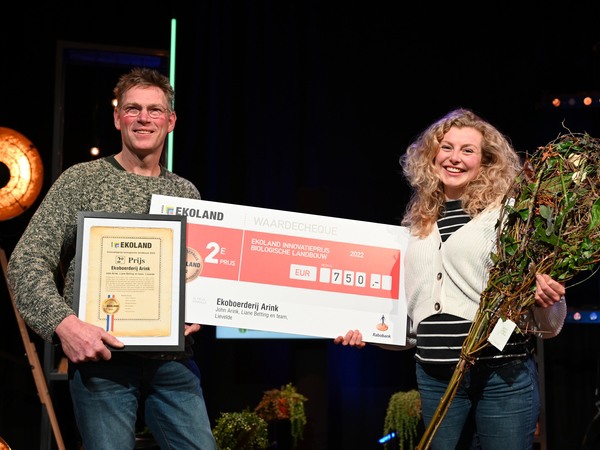 De tweede prijs van de Ekoland Innovatieprijs 2022 is gewonnen door het bedrijf dat de kringloop consequent sluit en een voorbeeld is voor melkveehouders in heel Nederland: Ekoboerderij Arink uit Lievelde. Want Ekoboerderij Arink kiest voor melkveehouderij van eigen grond, zonder input van buitenaf. Die consequente inzet op behoud van biodiversiteit en klimaat levert een goed economisch resultaat. Ook door de afzet in de regio, smaakvol eigen vlees als bijproduct van de melk, de prijswinnende witschimmel kaas en varkenshouderij voor restverwerking. Met een zeer lage mestgift en dus stikstofinput toch hoogwaardig produceren: Ekoboerderij Arink biedt een concreet voorbeeld van uitstekend werkende kringlooplandbouw.