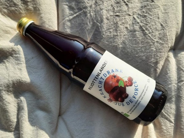 Ingrediënten: rode bietensap* 70%, granaatappel* 20%, kriekensap* 10%. * van biologische teelt, gepasteuriseerd.
