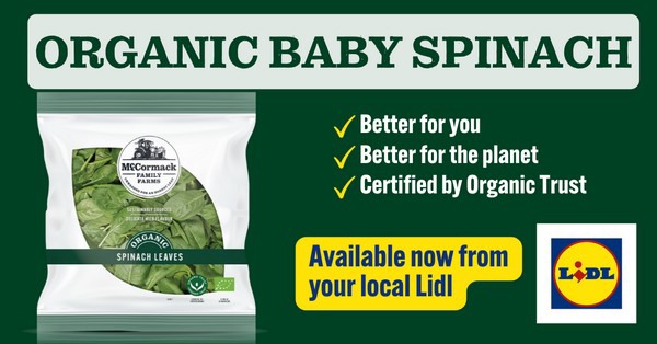 De Ierse sla- en kruidenteler McCormack Family Farms heeft vorig jaar een nieuw merk gelanceerd voor hun assortiment van ongewassen babysla en kruiden. Nu hebben ze de lancering van biologische babyspinazie aangekondigd voor Lidl Ierland.