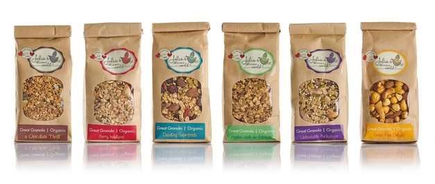 Tholen - Het assortiment granola's van Julia's Delicious World is vernieuwd. De range telt nu zes soorten: Berry Indulgent, Unbeatable Buckwheat, Grainfree Delight, Apples With an Attitude, A Chocolate Thrill en Dazzling Superfoods. De eerste drie zijn er in januari nieuw bijgekomen. De varianten met appel, chocolade en superfoods werden al vijf jaar door Julia's Delicious World gemaakt.