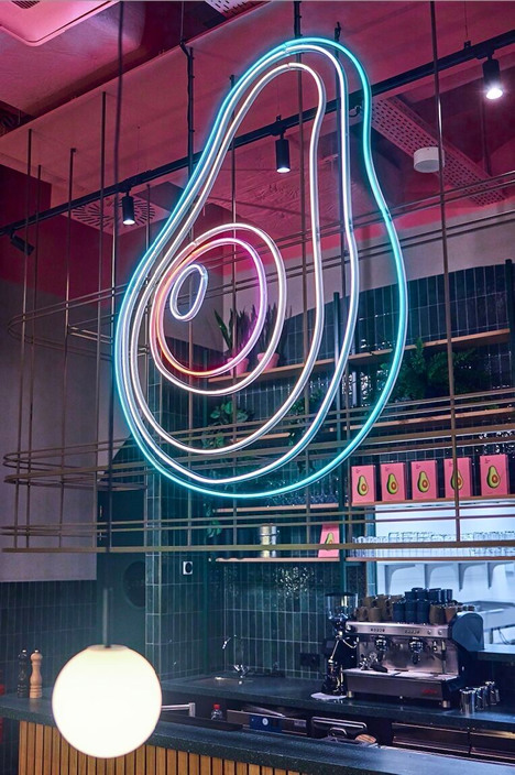 Elke flagship locatie krijgt altijd weer iets nieuws. Dit keer gaan we met The Avocado Show naar Westfield Mall of the Netherlands en zien we naast nieuwe neon designs en kleuren, ook een nieuwe vloertype en nieuwe sitting booths", zo meldt Ron Simpson op social media.