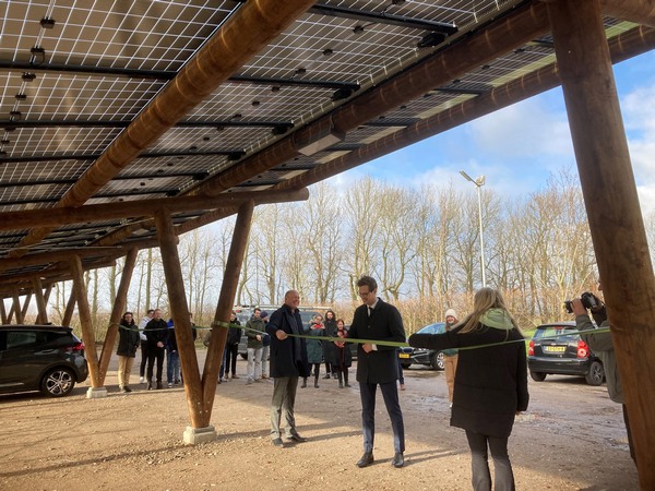 Op maandag 21 februari heeft Jurgen Nobel, wethouder Energietransitie, de zonnecarport van Landgoed de Olmenhorst in Lisserbroek officieel geopend.