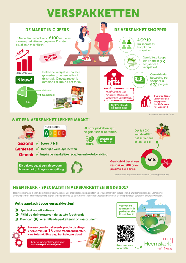 Heemskerk fresh & easy produceert verspakketten voor supermarkten in Nederland, België en Duitsland. Met hun verspakketten helpen zij consumenten om dagelijks een lekkere én gezonde keuze te maken. Want gezond eten is belangrijk maar het moet natuurlijk ook lekker en makkelijk zijn.