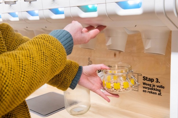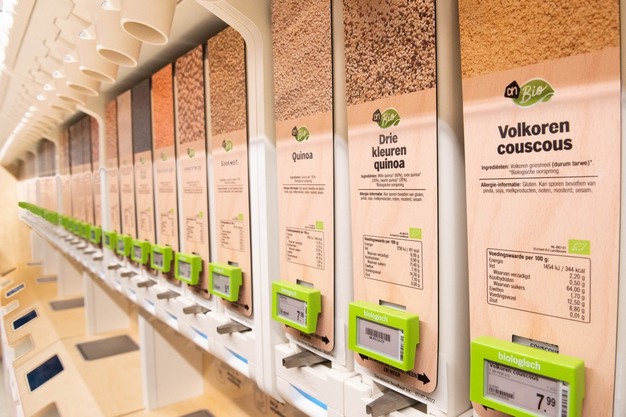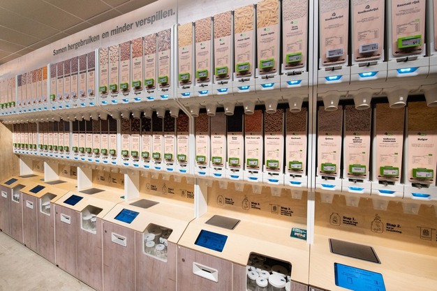 Het nieuwe concept bestaat uit zes meter verpakkingsvrij assortiment in slimme dispensers. Vanuit de dispensers kunnen klanten een eigen, herbruikbare verpakking vullen of ter plekke een herbruikbare pot of zak kopen. Klanten wegen eerst de verpakking zonder product, daarna vullen ze die met één van de zeventig producten en vervolgens printen ze een etiket waarmee ze afrekenen bij de kassa. Om het winkelend publiek enthousiast te maken voor verpakkingsvrij boodschappen doen, hangen bij verpakte producten in de winkel zoals noten en rijst kaartjes om klanten erop te attenderen dat die producten ook verpakkingsvrij verkrijgbaar zijn.