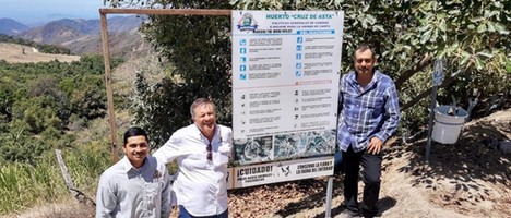 Van rechts naar links: Efraín Benítez (CEO van Aguacaturry), Juan Becerra (directeur van Alcoaxarquía) en César Ramírez (technisch directeur van Aguacaturry) in een van de boomgaarden van het Mexicaanse bedrijf in Nayarit.