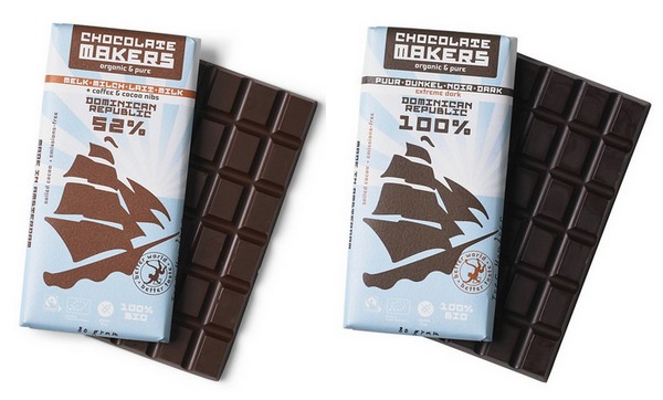 De Amsterdamse Chocolatemakers introduceren niet één, maar twee nieuwe repen in hun meest duurzame assortiment met gezeilde cacao. Een donkere melk reep met 52% cacao, koffie en cacaonibs en een 100% pure reep.