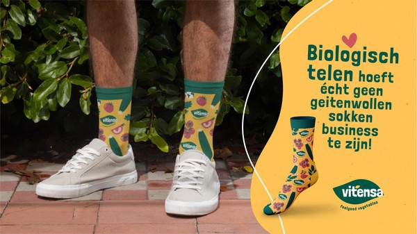 Aan relaties van het bedrijf is de omschakeling zeker niet onopgemerkt voorbij gegaan. Zij ontvingen in de eerste week van mei een opvallende mailing thuis, voorzien van een paar sokken en het thema ‘Met onze biologische teelt zijn we helemaal in de mode’. Daarmee vroeg Vitensa ook aandacht voor de nieuwe huisstijl die tijdens de omschakeling is ontwikkeld.