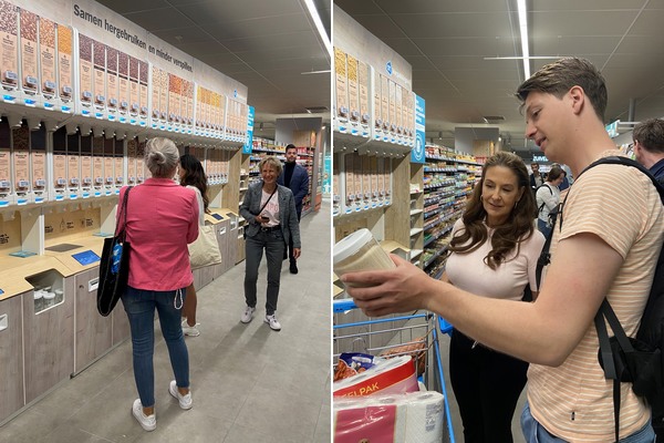 Voor de implementatie bij Albert Heijn werken LEEV en SUPZero samen om deze pilot tot een succes te maken. Hilde van der Vegt van SUPZero helpt met kennis van Zero Waste for business oplossingen en het begeleiden van gedragsverandering bij zowel de technische realisatie als storytelling rond het AH Verpakkingsvrij concept.