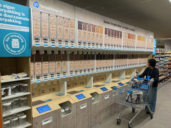 Tholen – Eind vorig jaar presenteerde LEEV het LEEV Tap To Go systeem binnen de retail tijdens de Free From Expo in Amsterdam. LEEV wil hiermee een duurzame verpakkingsoplossing bieden voor consumenten door meer hergebruik te stimuleren en minder te verspillen. Dinsdag 10 mei opende Albert Heijn haar vernieuwde winkel aan het Gelderlandplein in Amsterdam. Opvallende verschijning hierin is het 6 meter AH Verpakkingsvrij-'schap', waar LEEV als productleverancier en serviceprovider actief is om het circulaire verpakkingssysteem te laten draaien. De AH XL in Rotterdam had hier vorige maand de primeur mee. Na Gelderlandplein zal in deze pilotfase ook de XL in Leidschendam nog volgen. Daarna komt het systeem het komende jaar in nog eens 50 winkels. Zo'n 80% van het assortiment in het systeem is momenteel biologisch.