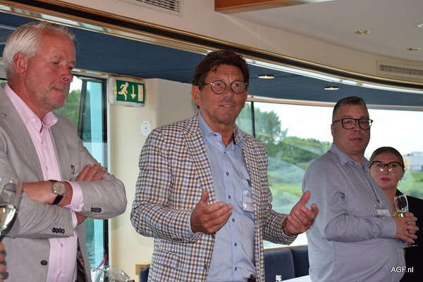 Tijdens het afsluitende diner aan het eind van het programma werd afscheid genomen van voorzitter Ron de Greeff. Die geniet al ruim een maand van zijn pensioen en draagt het stokje over aan zijn opvolger Michiel Geraedts, tevens zijn opvolger bij van Staay-van Rijn. Ron was sinds de oprichting voorzitter geweest. Oud-bestuurslid Riny van der Staak blikte even terug op de geschiedenis van de businessclub. Deze is namelijk ontstaan vanuit de Handelsvereniging waarin veilingkopers zich hadden verenigd om tegen de “veiling te ageren”. Ron turnde de club om tot een netwerkclub. Twee keer per jaar is er een leuk en aangenaam programma. “Blijf er tijd voor vrijmaken, want het is belangrijk om elkaar niet alleen via de telefoon te kennen”, benadrukte Ron.