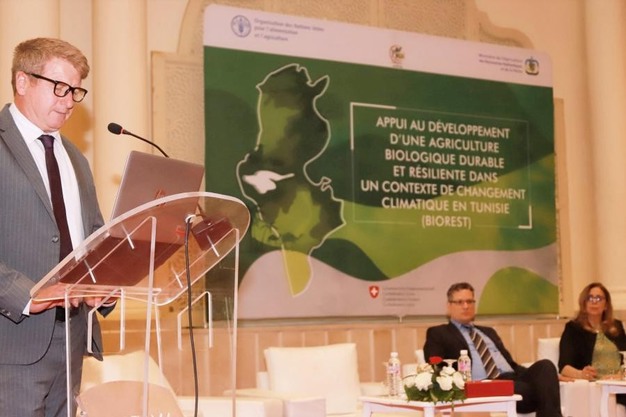Tunesië is één van de grootste exporteurs van biologische producten, maar dat neemt niet weg dat de sector nog steeds met structurele uitdagingen en grote beperkingen te kampen heeft. Patrik Zimmerli, vertegenwoordiger van het directoraat Samenwerking van de Zwitserse ambassade, verklaarde dat dit project op het juiste moment een bijdrage levert aan de inspanningen van de Tunesische regering om zich beter te wapenen tegen de klimaatverandering. De ontwikkeling van de biologische landbouw is een adequaat antwoord en vormt een van de beste oplossingen om zich aan te passen aan de klimaatverandering en nieuwe economische kansen te bieden aan de familiebedrijven van producenten.