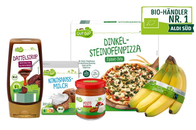 In 2004 introduceerde Aldi Süd zijn eerste biologische product onder het bekende huismerk 'GUT bio': biologische eieren. Na 18 jaar zijn er nu meer dan 500 biologische producten verspreid over het jaar uit bijna alle productgebieden. Aldi Süd blijft daarmee de nummer één in de biologische retailers in Duitsland. Het huismerk GUT bio won de prijs voor 'Beste Huismerk' onder negen huismerken van LEH in de categorie 'Biologische producten' bij de Duitse Vereniging voor Consumentenstudies in 2022.