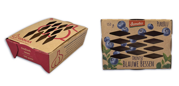 "Het bessenbakje is gemaakt van gerecycled karton en wordt geproduceerd in onze BRC gecertificeerde fabriek, 100% foodsafe en na gebruik bij het oud papier af te voeren. "Door karton te gebruiken als verpakking verminder je direct het plastic afval en minimaliseer je de impact op het milieu. De fruitbakken worden gebruiksklaar en in elkaar gestapeld geleverd, waardoor je gemakkelijk en snel kan werken", aldus Karel-Jan.