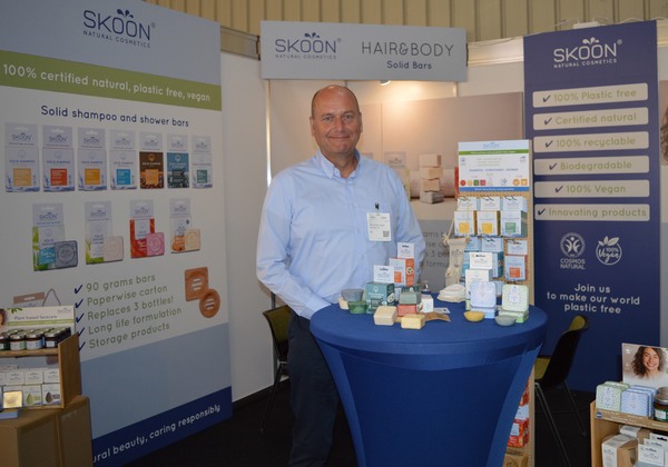 Tholen - Skoon Cosmetics heeft een solid make-up remover ontwikkeld en op de markt gebracht. Dit nieuwe product werd eind juli tijdens de VIVANESS in Neurenberg gepresenteerd. "Deze solid make-up remover is uniek in de markt", vertelde Rob van der Leegte in stand. Er zijn twee varianten, eentje voor de zeer gevoelige huid en eentje voor de normale licht vettige huid. "De remover voor de gevoelige huid is geurloos en we hebben de essentiële oliën er uitgehaald en meer verzachtende ingrediënten toegevoegd. Dat doen we in onze hele range: we hebben van elk product een variant voor de extreem gevoelige huid. De andere remover is geschikt voor alle mensen met een gewone, iets vettigere huid. Daar zit een lekker geurtje aan", aldus Rob.