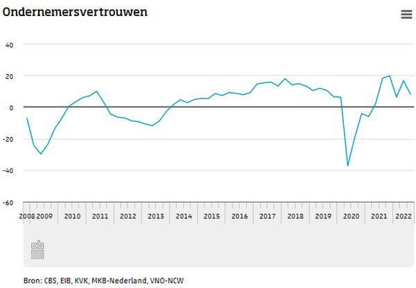 Aan het begin van het derde kwartaal van 2022 daalde het ondernemersvertrouwen naar 8,2. Een kwartaal eerder steeg de stemmingsindicator nog, nadat in februari 2022 de meeste coronamaatregelen vervielen. Deze hadden sinds het begin van de coronapandemie invloed op het sterk fluctuerende ondernemersvertrouwen.